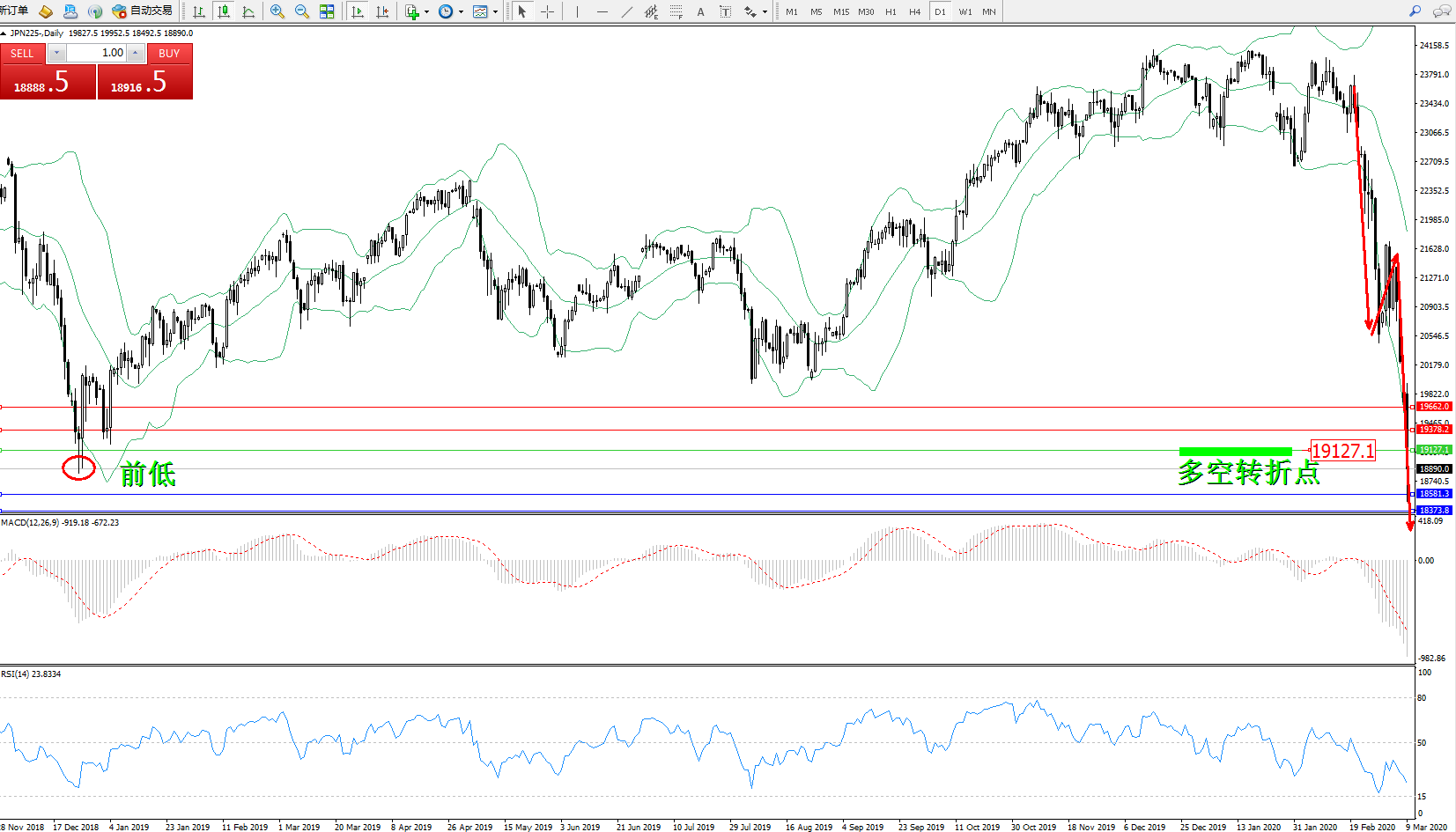 日经225指数3月9日(周一)收盘下跌1117.25点,跌幅5.38%,报19632.50点。原油市场的暴跌引发连锁反应,全球股市纷纷暴跌,市场恐慌情绪空前,日本内阁府9日发布二次统计报告,将2019年第四季度日本实际国内生产总值(GDP)环比降幅调整为1.8%,按年率计算降幅为7.1%。在内阁府2月17日发布的初步统计结果中,去年第四季度日本实际GDP环比降幅为1.6%,按年率计算降幅为6.3%。二次统计报告反映了法人企业统计等最新统计数据。企业设备投资大幅下调是此次报告数据发生明显变化的主要原因。日本2月经济观察家当前指标跌至2011年以来最低,日本2月经济观察家前景指数录得2008年金融危机以来最低值。
