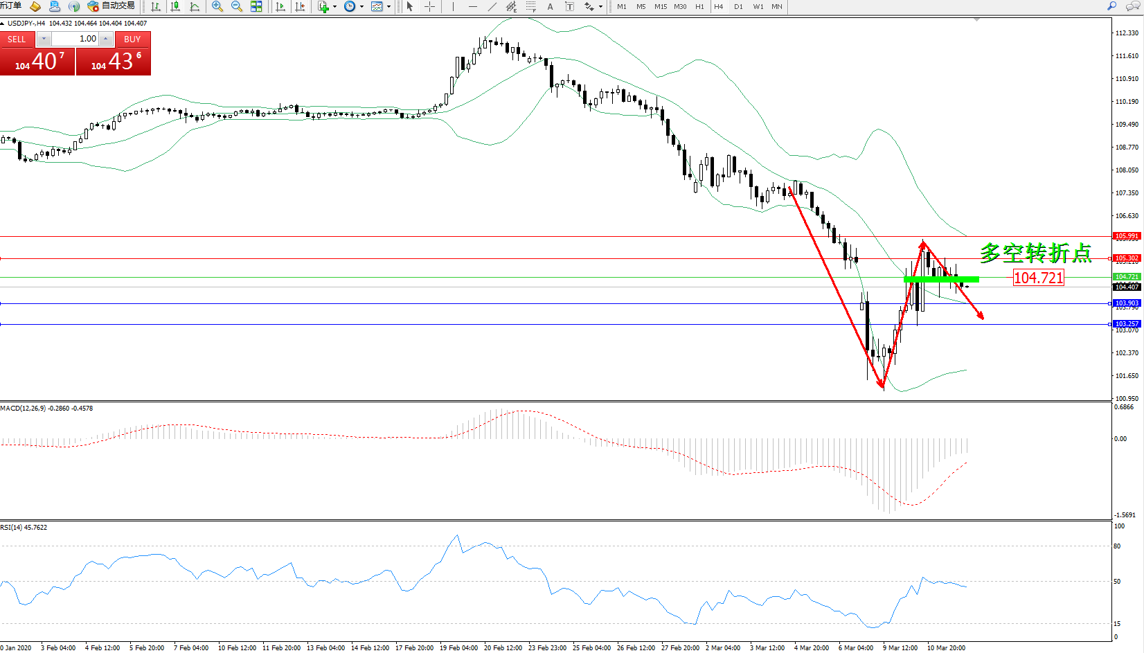 美元兑日元跌1.04%至104.54;日内风险偏好情绪回落,与股市大跌走势一致,因对公共卫生事件扩散的担忧推动投资者纷纷转向避险资产;美指下跌同时美债收益率也大幅下跌,日元受益于避险需求的上升,但在投资者在欧市开盘英国央行紧急降息后对全球宽松预期重燃信心后,避险日元即再度遭到抛售,但整体上避险需求依旧支撑着日元。
