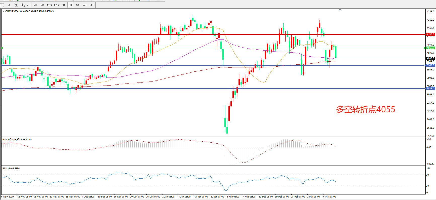 多空转折点:4055.00