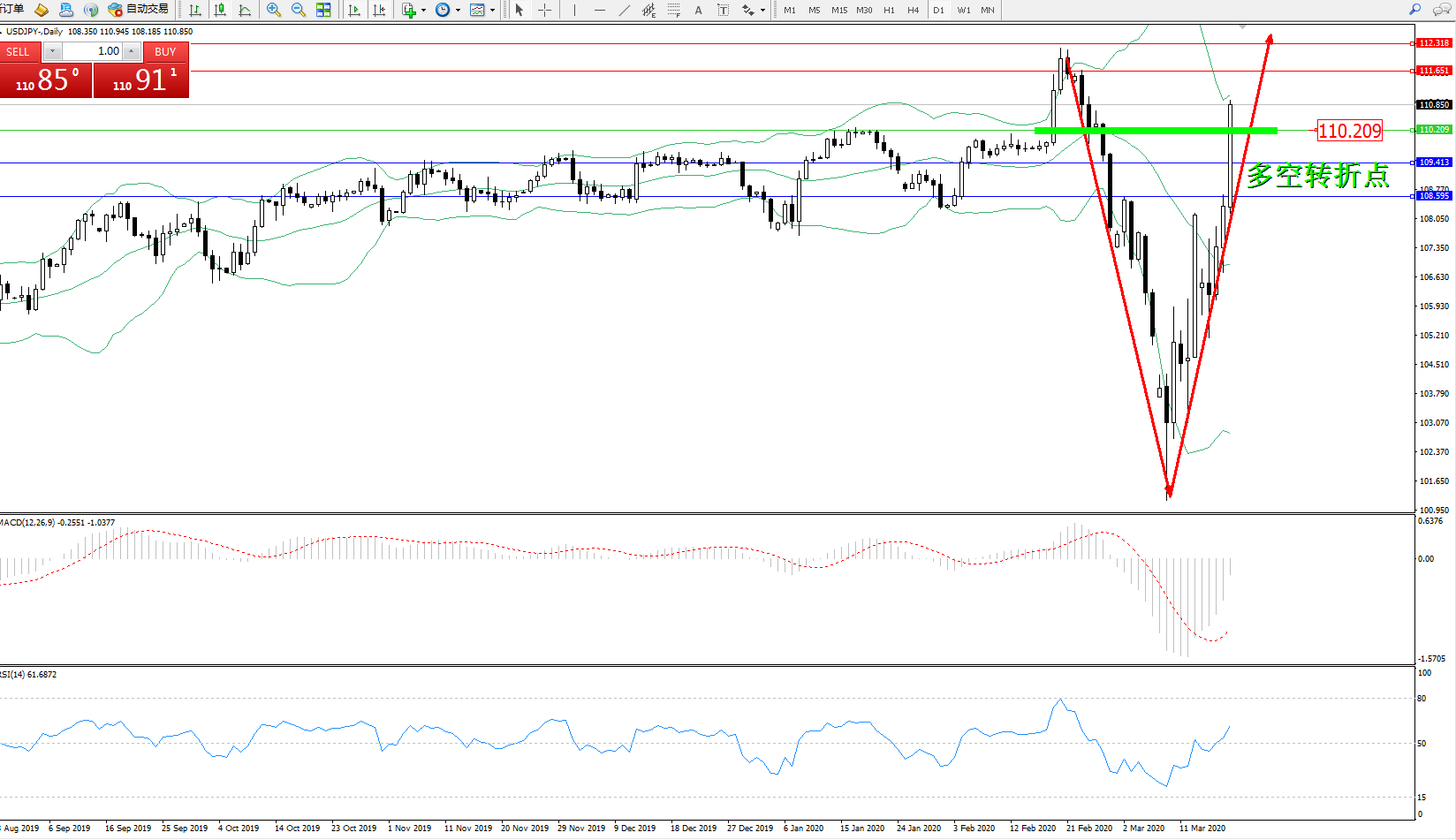 技术点评:多头动力持续上行态势良好,自从低位V型反转拉升上行后,多头强势上扬,前期高位节点破位在即,布林带指标处于收口走势中,正在试探上轨附近节点,有继续上扬态势,MACD指标处于空头区域低位缓慢上行至0轴线附近徘徊,RSI指标处于多头区域缓慢整理上行突破50均衡线进入多头区域持续上攻中;