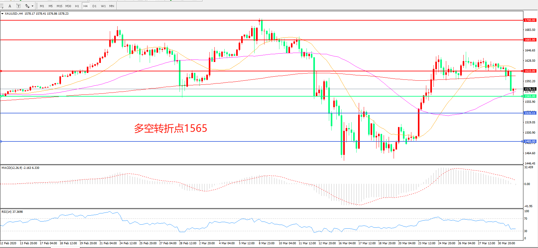 备选策略:在1565.00之下看跌,目标1535.00 1485.00