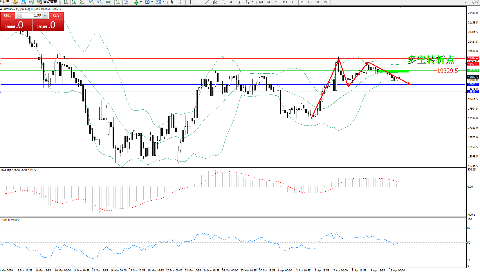日经225指数413日(周一)收盘下跌346.77点,跌幅1.79%,报18999.00点。日内投资者对疫情的担忧情绪再起,亚洲股市纷纷走低,全球新冠病毒感染病例突破180万,如果没有有效的治疗方法或疫苗,美国经济可能面临18个月周而复始的停摆,美国股指期货下跌,日本股市也下跌。某些市场仍因复活节假期而关闭;投资者“预期收益和经济数据不佳,同时也担心第二季度的指引疲弱,因各经济体继续实施某种形式的限制出行,对全球经济的警惕升温给风险资产造成压力,各国政府相继实施封锁措施以遏制疫情蔓延,全球经济自金融危机以来首次陷入萎缩。