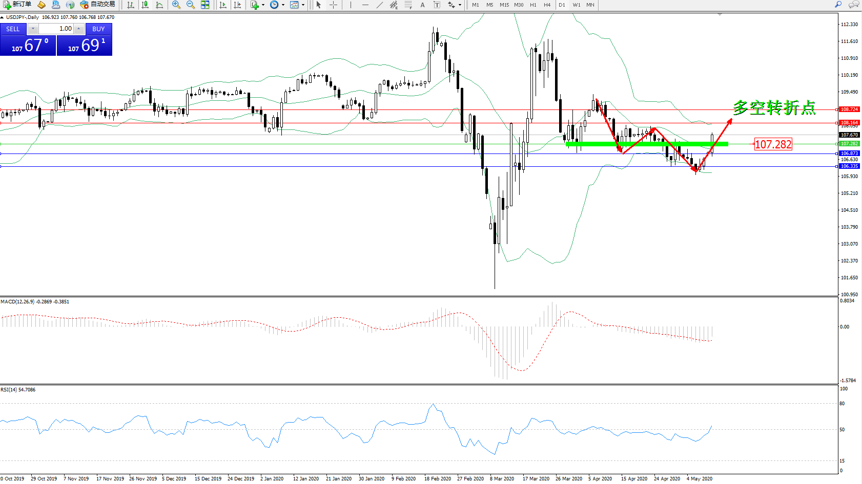 交易策略:107..282上方看涨,目标108..164、108.724