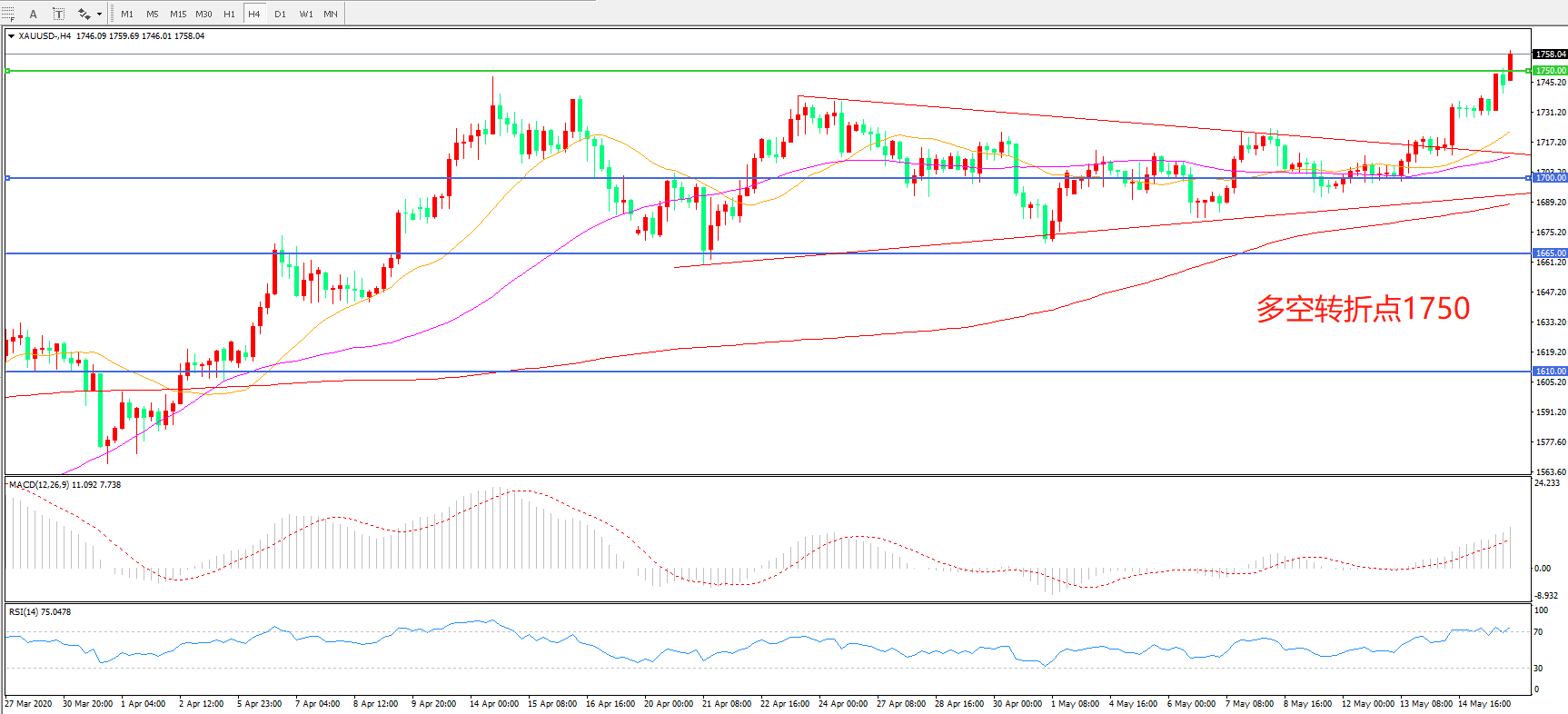 交易策略:  在1750.00之上看涨,目标1785.00   1800.00