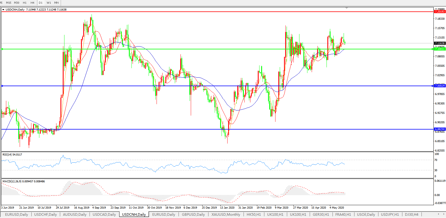 交易策略: 在7.1000之上,看涨,目标价位为7.2000,然后为7.3000。