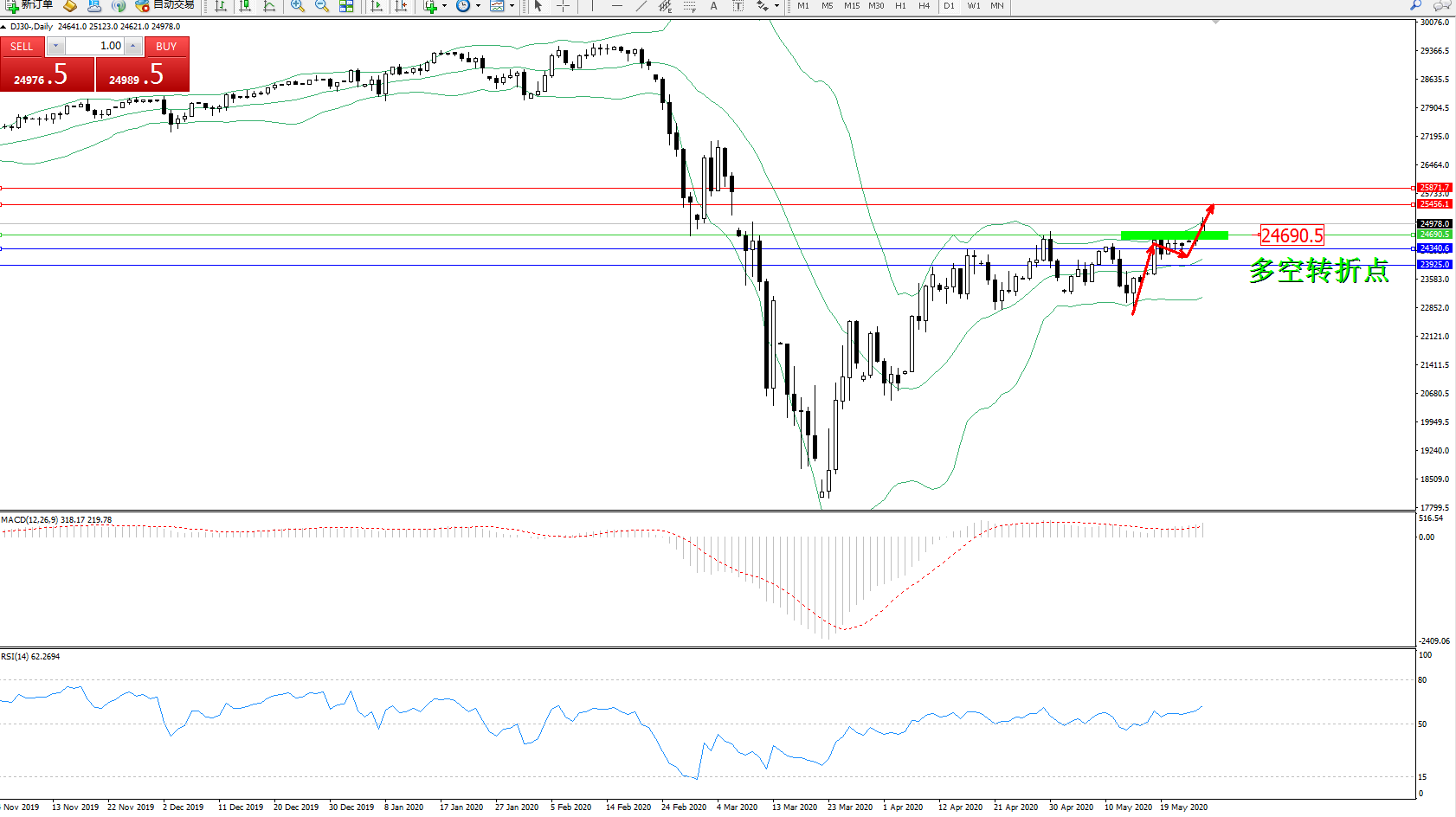 道琼斯指数526日(周二)收盘上涨530.00点,涨幅2.17%,报24995.11点。美股高开高收,道指初步收涨超2%,金融板块领涨,瑞幸咖啡初步收涨约50%。因欧美国家逐步放松封锁措施,市场憧憬经济复苏,股市的上涨反映了市场风险偏好的回归,打压了美元的避险需求;美联储发布4月贴现率会议纪要,各区域联储银行理事会在4月赞成维持贴现率不变,认为前景存在相当大的不确定性。美国一些州逐步放开了限制措施,但是美国经济逐步复苏的步伐也符合我们的观点,即要实现任何形式的正常化美国都任重道远。