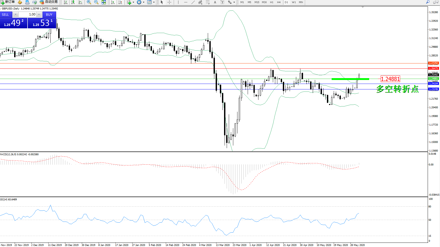 交易策略:1.24881上方看涨,目标1.264751.27292
