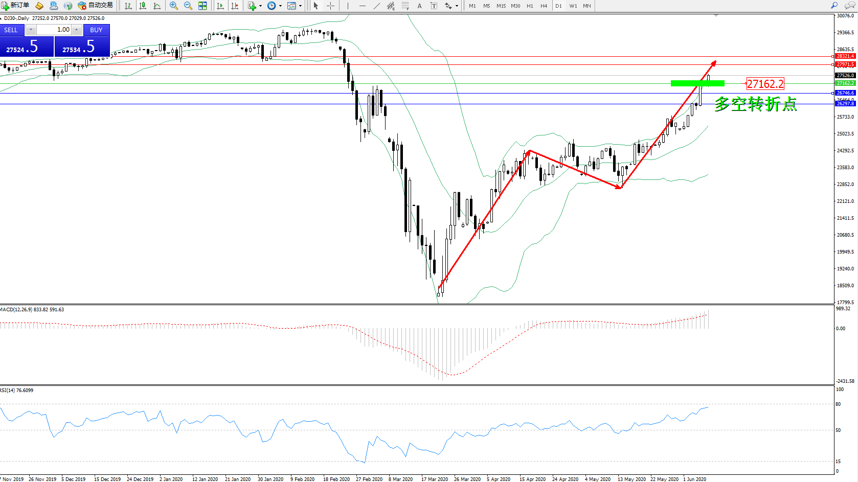 道琼斯指数68日(周一)收盘上涨461.50点,涨幅1.70%,报27572.44点。美股三大指数线收涨,随着放松防疫封锁促进了对经济前景的乐观预期,美国股市史诗级的上涨帮助标普500指数在周一收复2020年全部失地,这个基准指数周一升至15周高点,从今年低点的累计涨幅扩大至近45%。纳斯达克100指数升至历史新高,波音领涨道琼斯工业平均指数。随着美国很多地区取消防疫封锁,交易员们正在追涨美股。投资者可能没有考虑所有潜在风险,市场参与者目前在等待美联储周三结束的为期两天的政策会议,不过由于非农就业岗位意外增加,已经不再预测美联储会采取负利率的可能性。