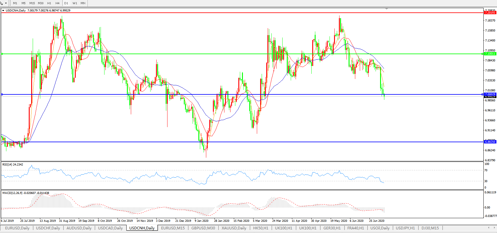 交易策略: 在7.1000之下,看跌,目标价位为7.0000,然后为6.8820。