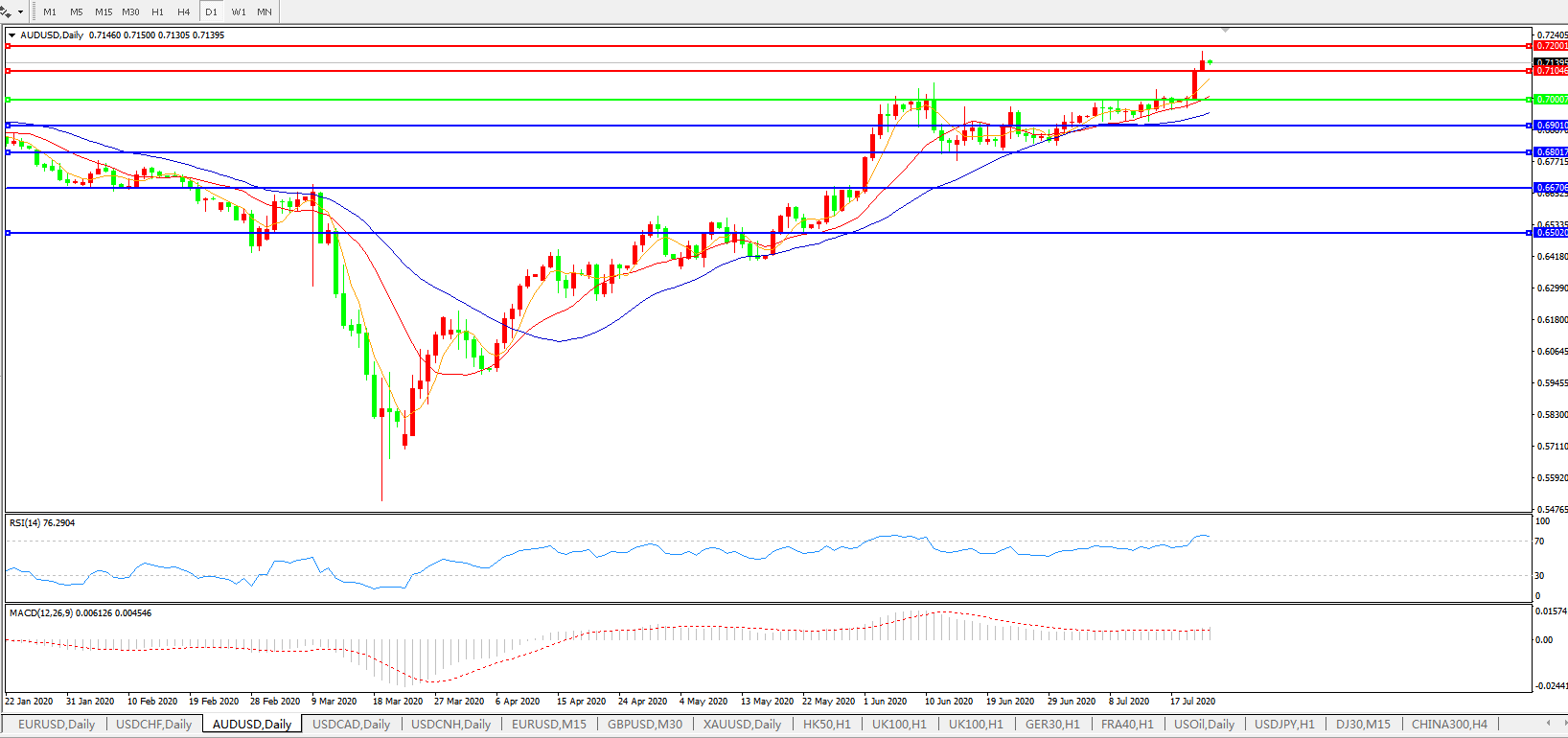 交易策略:0.7000上方看涨,目标0.7100、0.7200