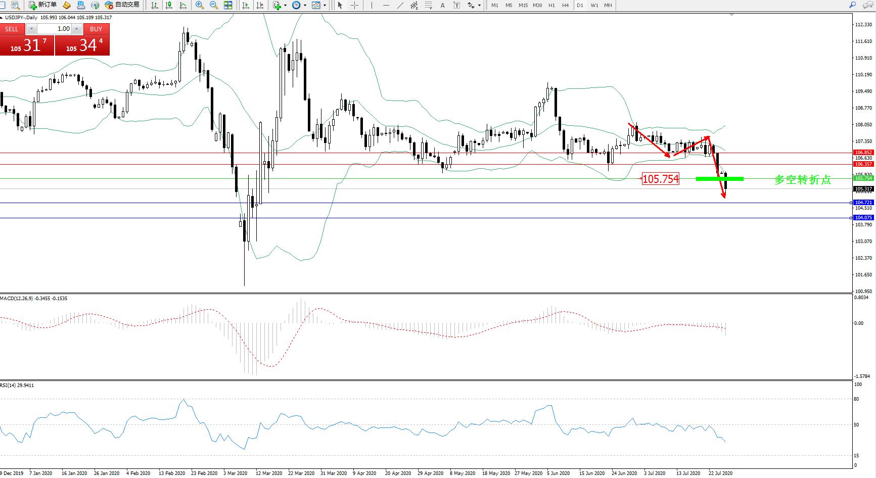 美元兑日元下跌0.73%至105.37,盘中稍早跌至105.12,为3月13日以来最低;料在105水平获得支撑,美元指数跌跌不休,日元也受到避险需求的支撑,全球疫情继续恶化,不过即使美元兑日元下跌,日本投资者也可能会观望,而不是急于投资海外,因为美国收益率如此之低;只要有对美国经济复苏的期望,并且美国股市虽有调整仍保持高位的话,那么美元兑日元的下跌可能会很缓慢;如果国际紧张局势急剧升级,或者美国数据持续显示复苏停滞,这将使美国收益率走低,那么汇价将跌破105。