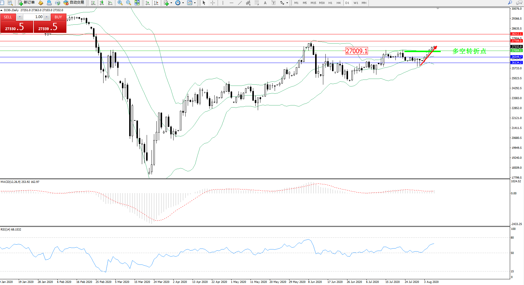 道琼斯指数8月7日(周五)收盘上涨46.50点,涨幅0.17%,报27433.48点。美股三大指数收盘涨跌不一,美国7月份非农就业人数增加176.3万人,增幅创有记录以来第三高水平,预期为增加148万人;失业率10.2%,预期为将10.6%;美国7月非农就业数据优于预期,本周特朗普称,7月非农将录得一个“大数字”;美国科技股周五下挫,由于包括苹果、微软和亚马逊在内的重量级股票下跌,导致纳斯达克综指缩减本周涨幅;同时,非农就业报告好于预期,小银行、制造业股和公用事业股上涨帮助拉动了罗素2000指数。投资者密切关注白宫和国会的刺激措施谈判。