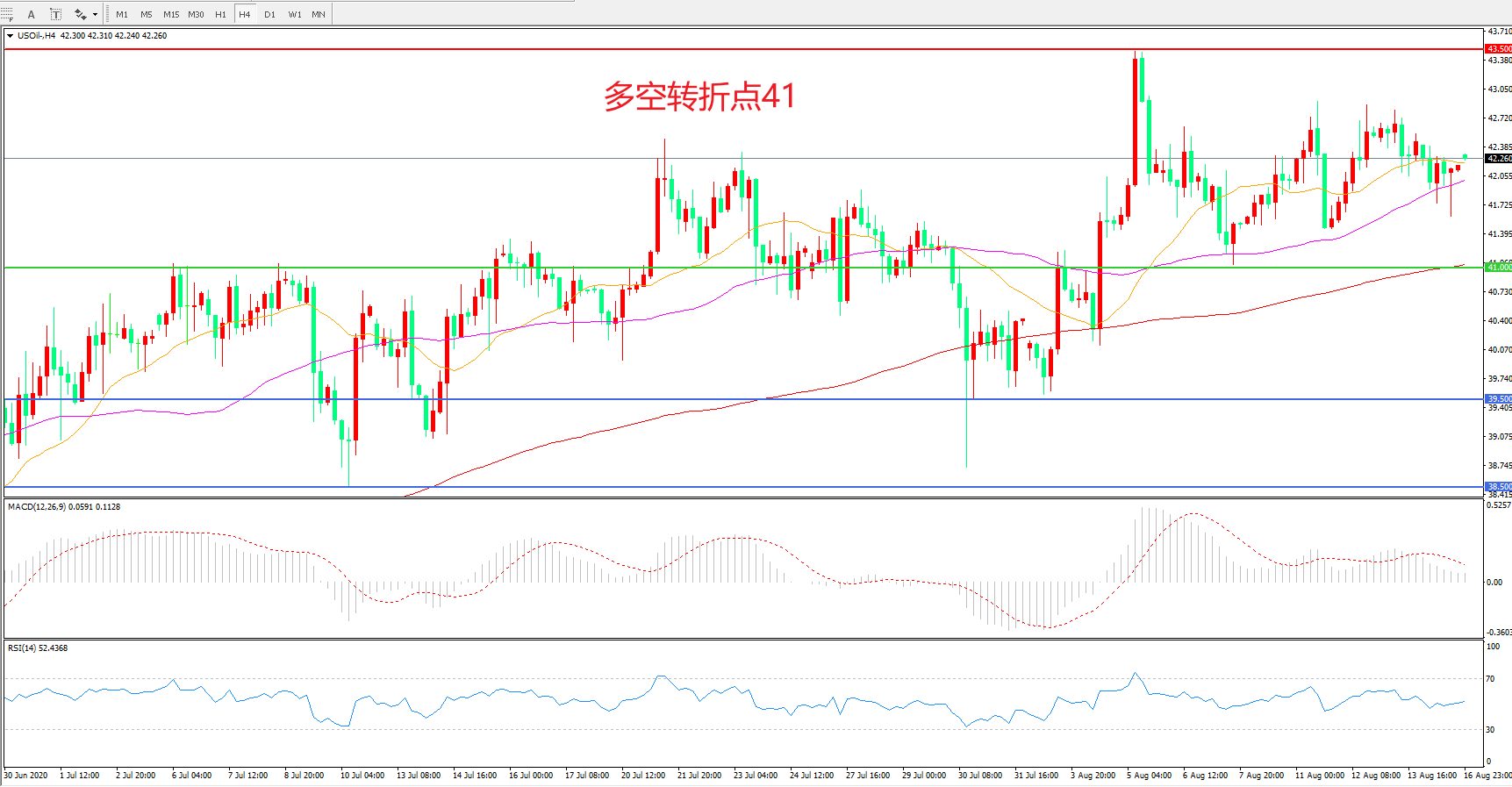 交易策略:在41.00之上看涨,目标43.50         46.00