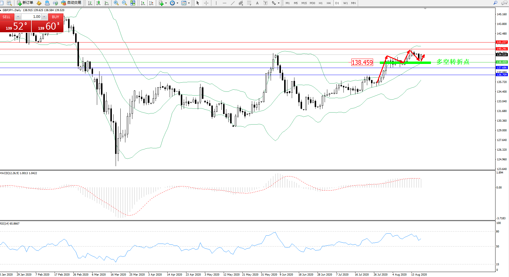 交易策略:138.459上方看涨,目标140.291、141.227
