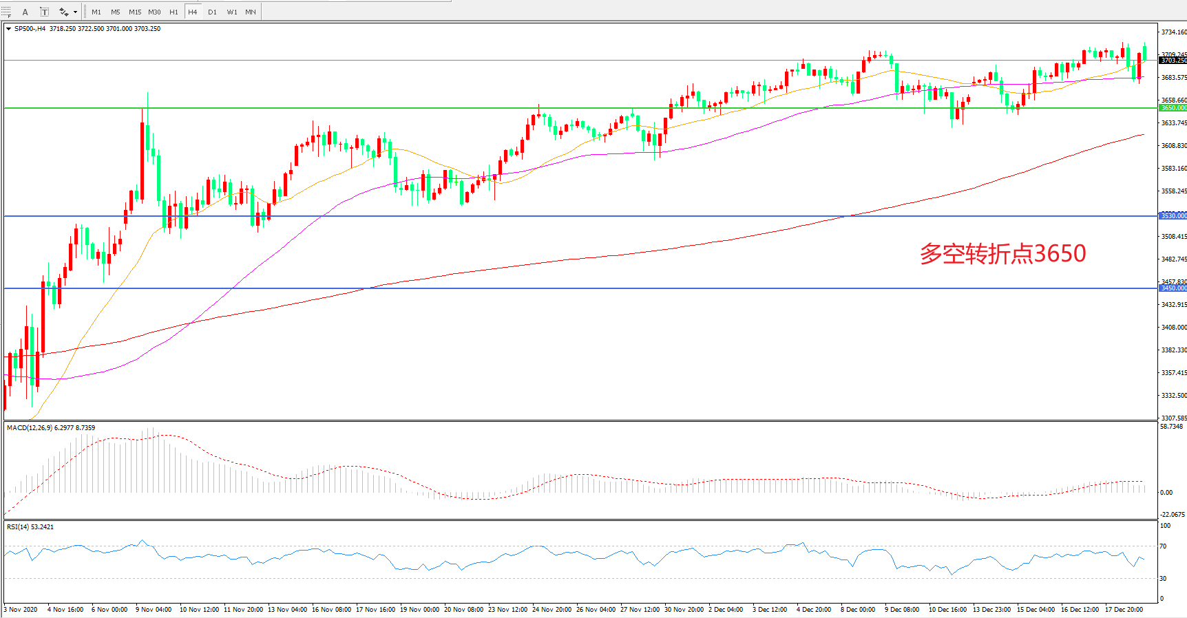 上周五(12月18日),尽管美国国会多位重要官员在周中就已信誓旦旦地表示“刺激协议即将达成”,但最终还是让市场失望了,美股高开低走,标普500尾盘拉升,收报3710.75点。大型科技股中仅Facebook和奈飞收涨,收盘后,特斯拉(TSLA)将加入标普500指数,成为按照市值计算加入该指数的最大公司,标普500指数也将进行调整。