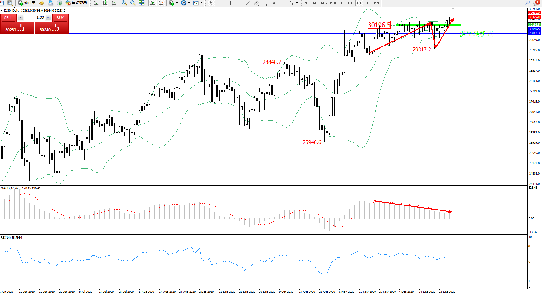 道琼斯指数12月29日(周二)收盘下跌68.30点,跌幅0.22%,报30335.67点。美股收盘,三大股指高开低走,美国现在的领导层将竭尽全力击败疫情--这将意味着更长时间的停摆,以及更多的刺激措施,美国参议院民主党人试图将新一轮纾困法案中对个人的直接补贴金额从600美元提高至2000美元,而共和党不顾总统唐纳德·特朗普最初提出了这项要求,执意阻挠民主党的努力;尽管特朗普大力推动,但把这项支出提高到4640亿美元的想法在共和党议员中并不受欢迎,他们日益关心国家债务上升问题。周一,仅44名共和党人加入到231名民主党人的行列,通过将个人补贴金额提高至2000美元的法案。在参议院,只有少数共和党人公开声援该法案。