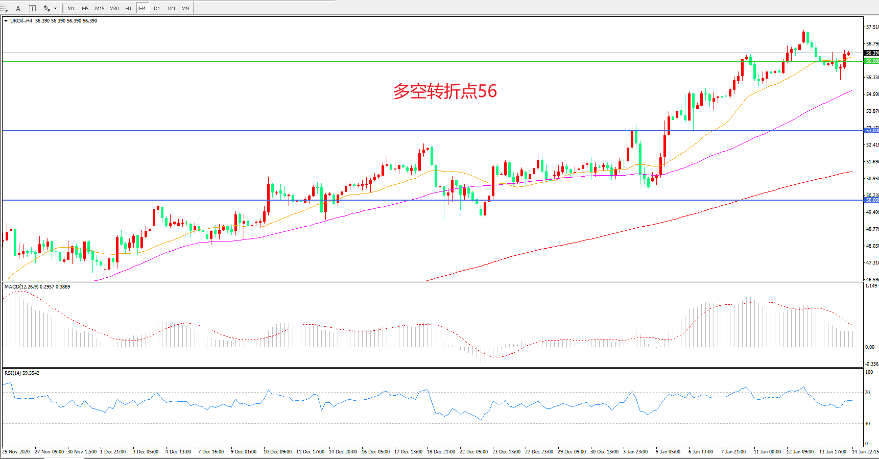交易策略: 在56.00之上看涨,目标60.00 64.00