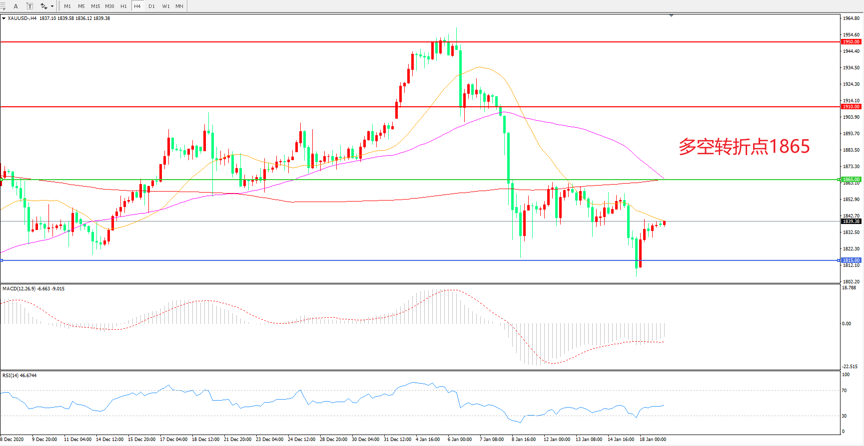 交易策略:在1865.00之下看跌,目标1815.00 1765.00