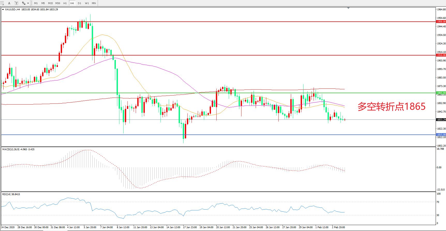 交易策略:在1865.00之下看跌,目标1815.00 1765.00