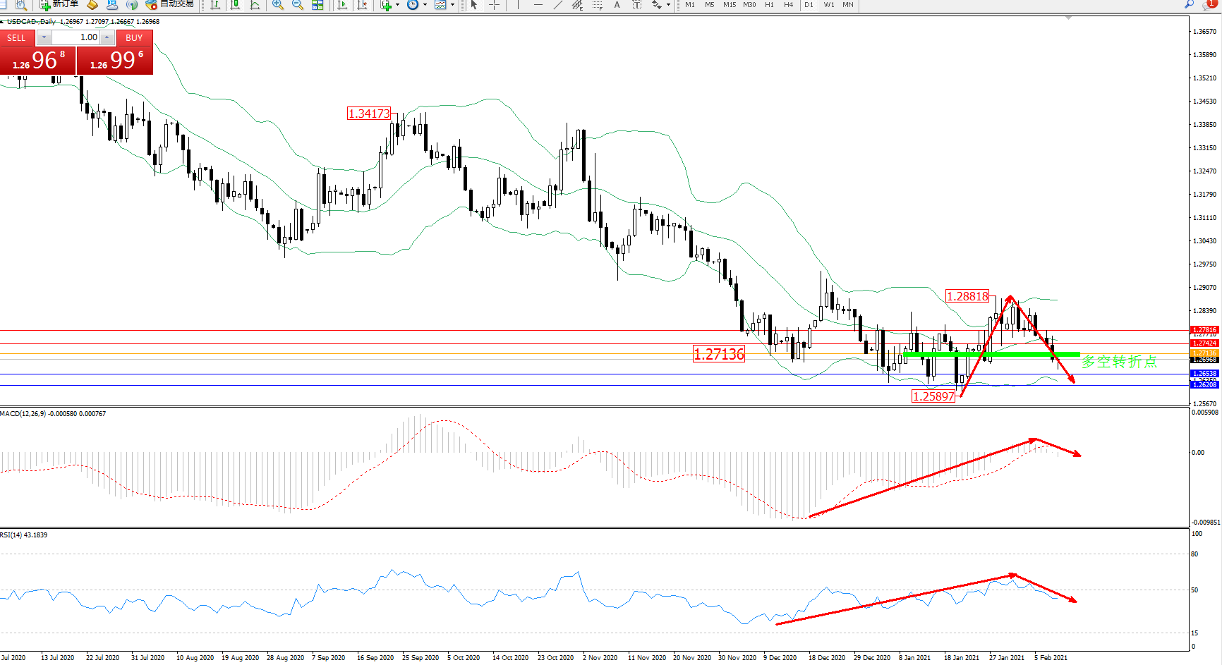 美元加元USDCAD——日K线图显示: