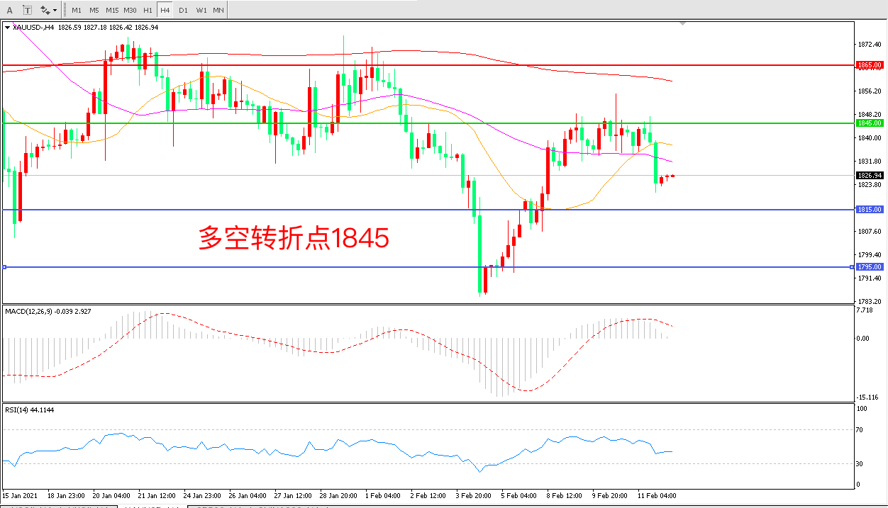 交易策略:在1845.00之下看跌,目标1815.00    1795.00