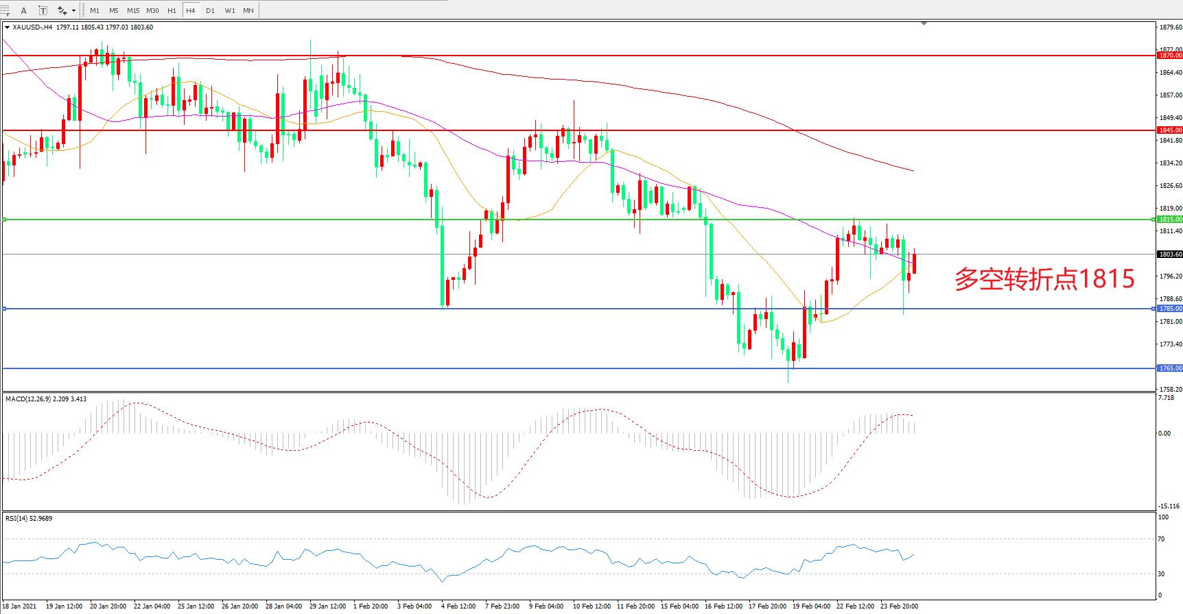 交易策略:在1815.00之下看跌,目标1785.00    1765.00