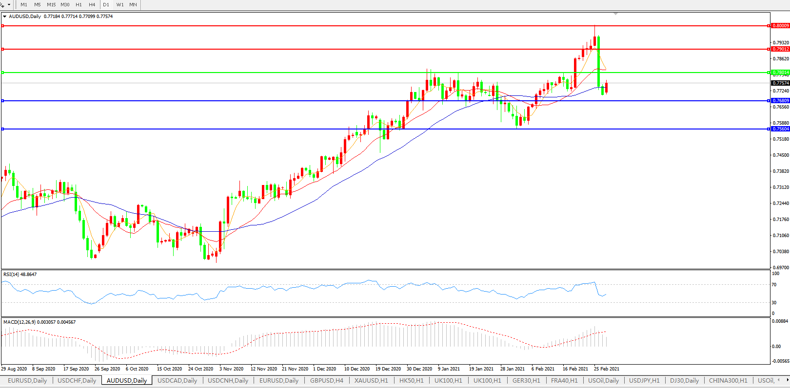 交易策略:0.7800下方看跌,目标0.7680、0.7560