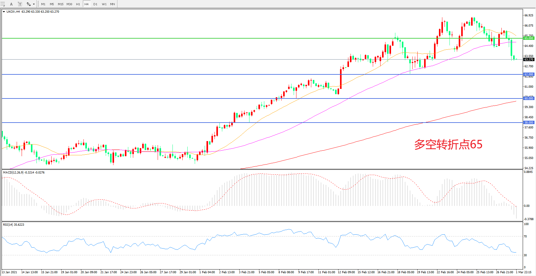 交易策略:  在65.00之下看跌,目标62.00    60.00