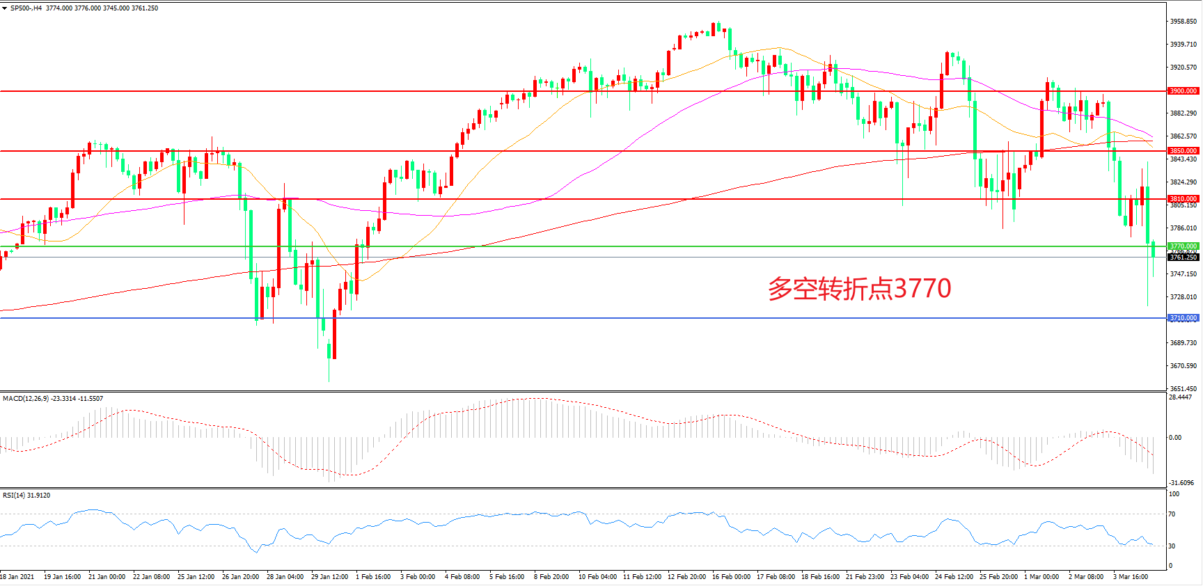 鲍威尔在他的讲话中声称物价上涨不会持续很长时间,也不会足以改变美联储的宽松货币政策。而对于市场最关心的债市,鲍威尔则表示,债市近期波动引起他注意,但美联储不会立即采取行动限制收益率涨势。这样的发言稳固了美元和长期美债收益率的升势,对股市形成了明显打压。今晚21:30分,市场将迎来每月一次的的非农就业数据,如果就业数据表现不佳,有可能导致标普进一步下调,务必重点关注。