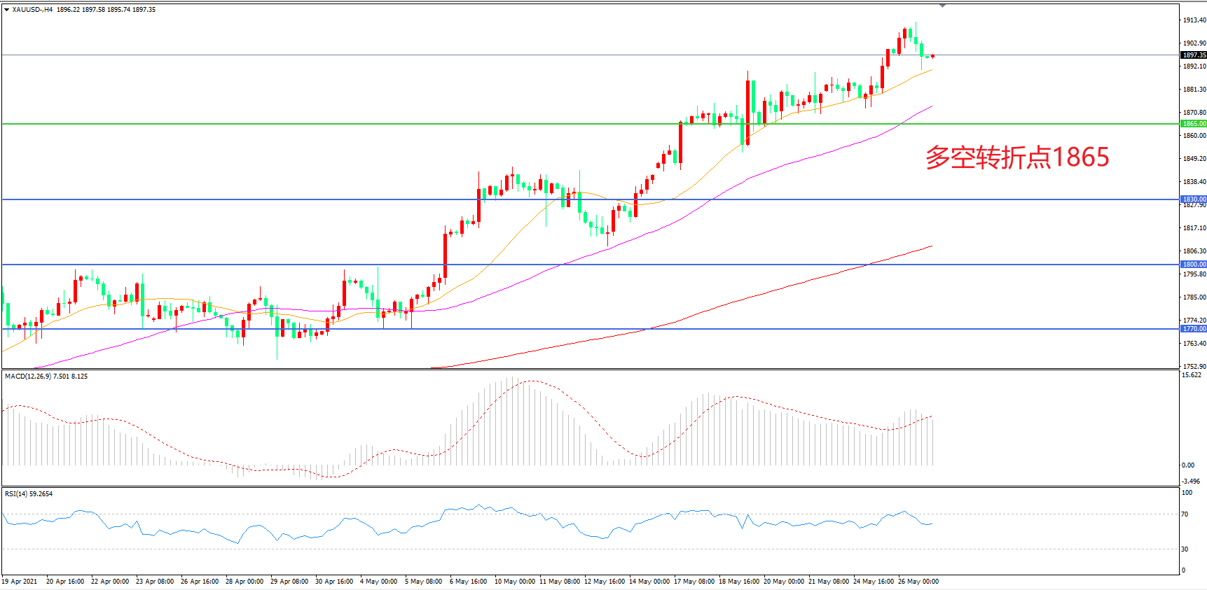 周三(5月26日),在智库布鲁金斯学会的线上活动中,美联储负责金融监管的副主席夸尔斯在讲话中淡化通胀风险,10年期美债收益率走出近三周低谷,跌入四个多月低位的美元指数反弹,黄金在站上1900美元后未能守住这一关口,收报1896.23美元/盎司。整体来看,目前美联储的态度依然偏向宽松,不过我们也得留意信号的转变。
