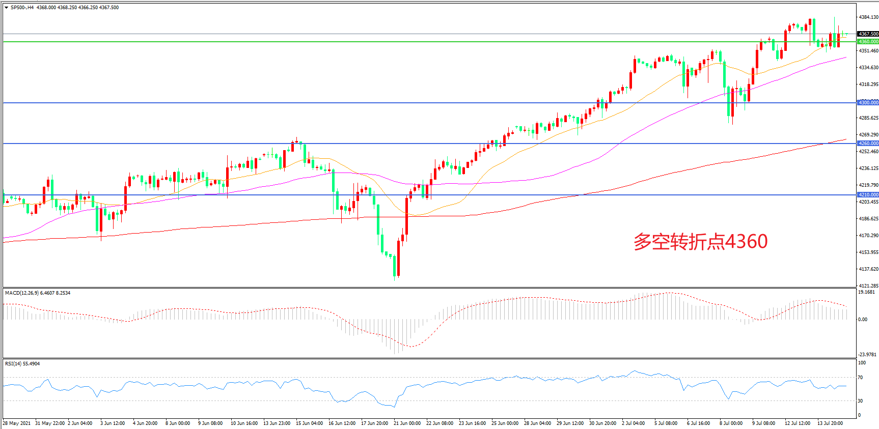 周三(7月14日),美联储主席鲍威尔在听证会上称经济复苏进程不足以令联储开始缩减QE,重申高通胀是暂时现象,多头情绪受到提振,标普500震荡上行,收报4367.25点。鲍威尔发表证词后,美国国债收益率下跌,且仍保持低位,这表明市场将他的言论解读为货币政策将保持宽松的信号,加上高盛和摩根大通的业绩均超过预期,财报季的美股有望再创新高。