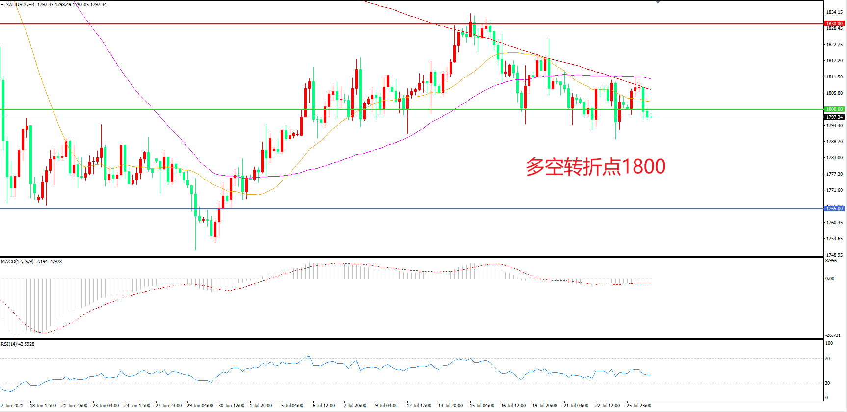备选策略:在1800.00之下看跌,目标1760.00 1730.00