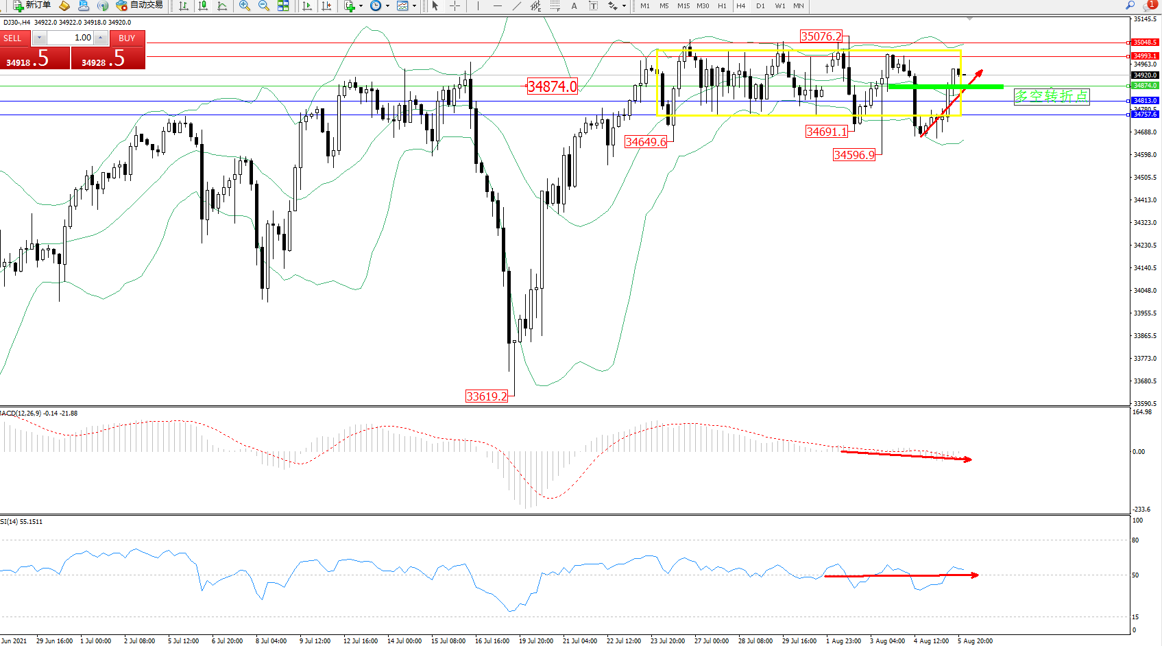 技术点评:长时间维持在布林带指标通道内呈矩形宽幅震荡平移,多空动力均处于焦灼状态,短期未能走出新的格局,布林带指标呈缓慢张口后再度平移,MACD指标处于0轴线附近弱势徘徊,RSI指标处于50均衡线维持震荡平移;