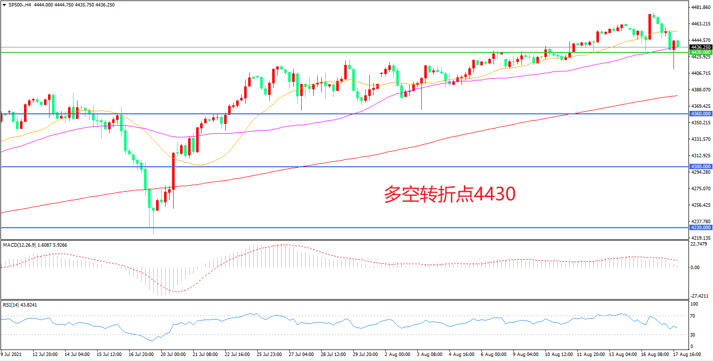 备选策略:在4430.00之下看跌,目标4360.00            4300.00