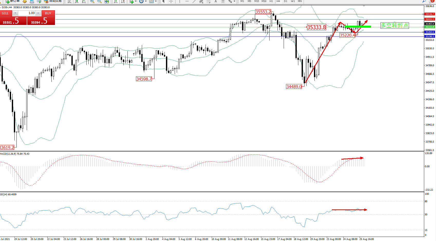 道琼斯指数8月25日(周三)收盘上涨39.24点,涨幅0.11%,报35405.50点;美股收盘,三大股指稳步上扬,杰克逊霍尔研讨会将于周四至周六举行,美联储主席鲍威尔周五将发表讲话;市场猜测美联储可能推迟减码,因冠状病毒德尔塔变种的传播威胁经济复苏。四分之三的经济学家预计此次研讨会或美联储9月21-22日的政策会议将有何时开始减码的信号。