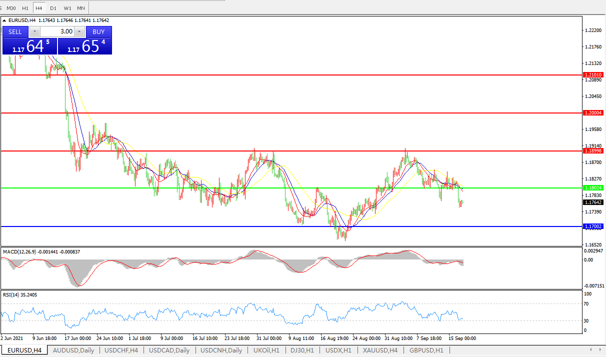 交易策略:1.1800下方看跌,目标1.1700、1.1600