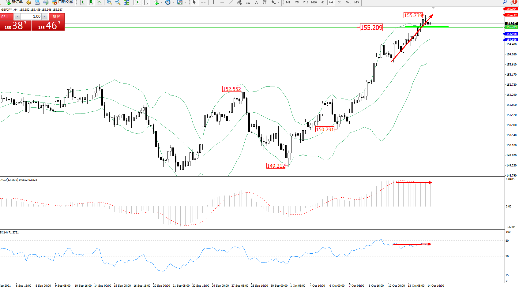 技术点评:多头动力延续布林带指标通道中上轨区间持续震荡上扬,高位抵达155.739位置后出现短暂遇阻状态,布林带指标呈上行趋势走势态势良好,短期未见最终止步迹象,MACD指标处于多头区域高位维持整理平移中,RSI指标处于多头区域维持高位徘徊中;