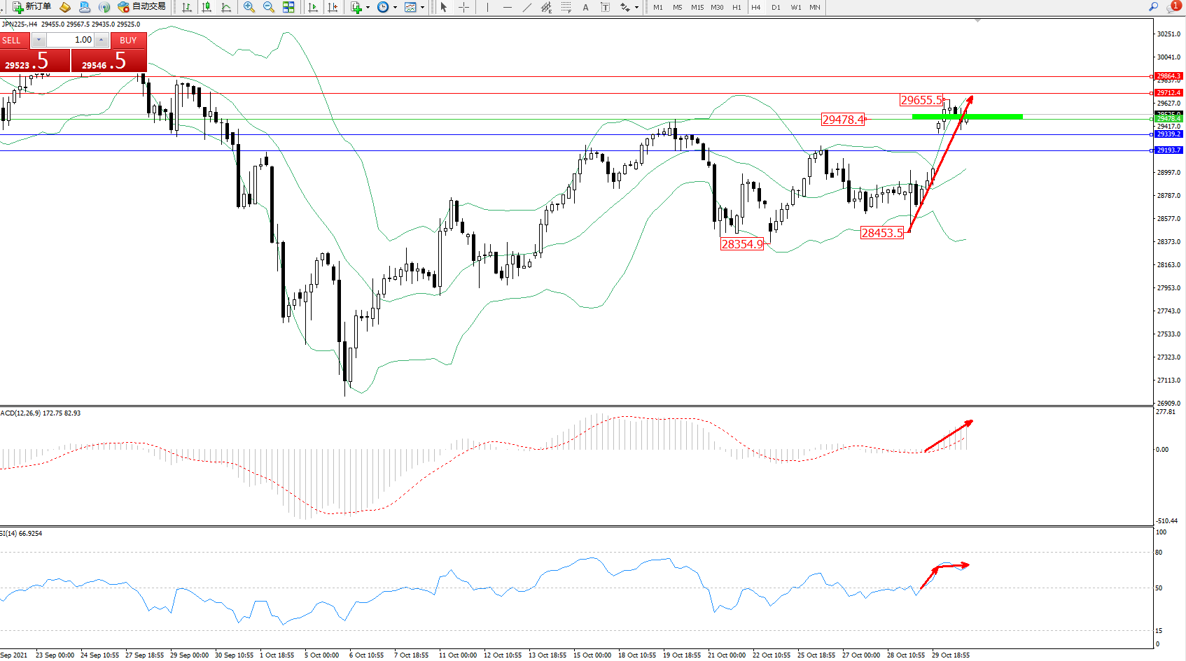 日经225指数11月1日(周一)收盘上涨748.81点,涨幅2.59%,报29641.50点。在日本执政联盟以超过预期的票数赢得国会众议院选举后,日本股市大涨,为岸田文雄政府开始实施经济刺激措施铺平了道路。日本东证指数涨2.2%,为9月24日以来最最大涨幅,而日经225指数上涨2.6%,为6月22日以来最大涨幅。日本执政党自民党,独自以261席获得多数席位。虽然该党失去了15个席位,但损失低于预期。这场胜利消除了人们的直接担忧,即岸田文雄可能会继菅义伟后成为下一任短期首相。