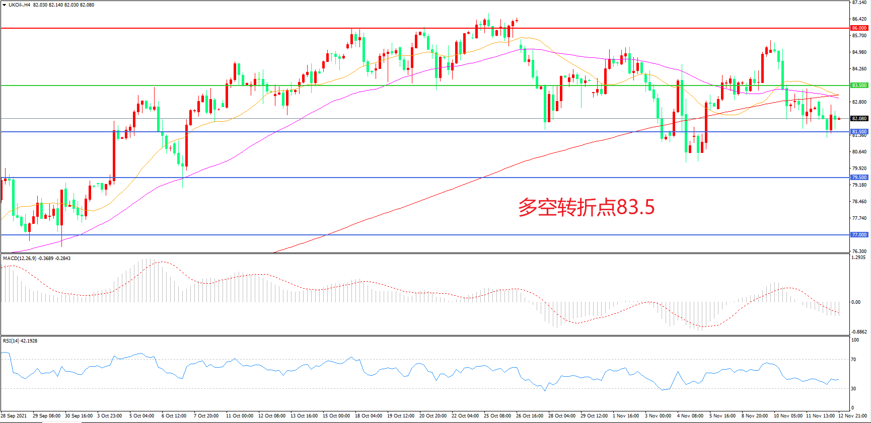 交易策略:在83.50之下看跌,目标81.50                 79.50
