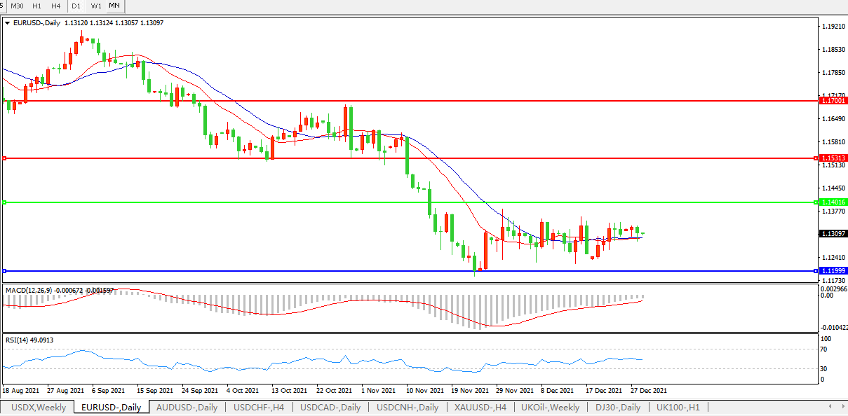 技术面简析:日图均线粘合无方向,汇价窄幅波动,MACD运行于0轴下但量能缩量,RSI横盘整理 ,预计短期汇价大概率将在整理后进一步下行。