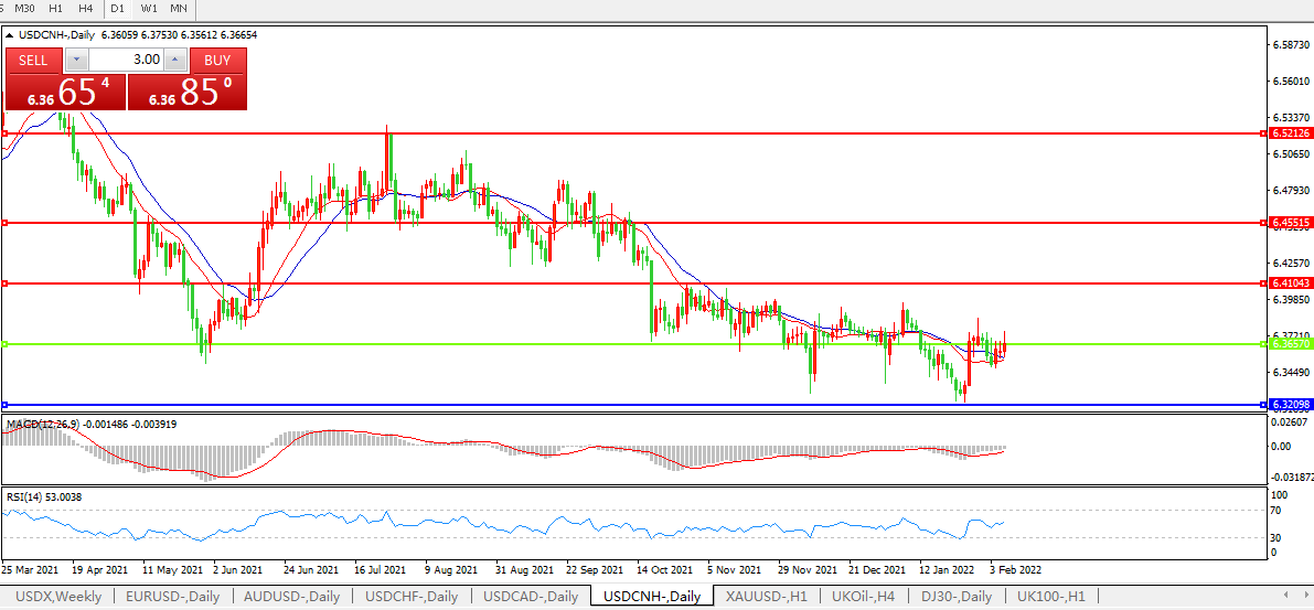 备选策略:在6.3650之下,看跌,目标价位为6.3200,然后为6.2800。
