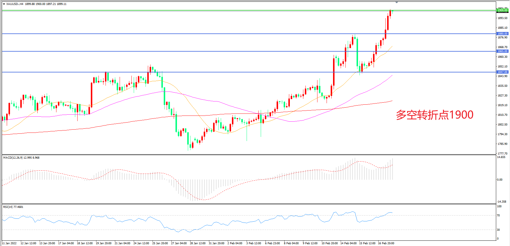 交易策略:在1900.00之上看涨,目标1915.00       1930.00