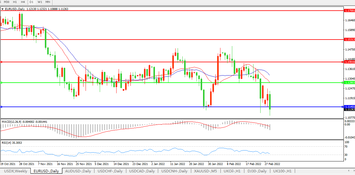 交易策略:1.1280下方看跌,目标1.1140、1.0600