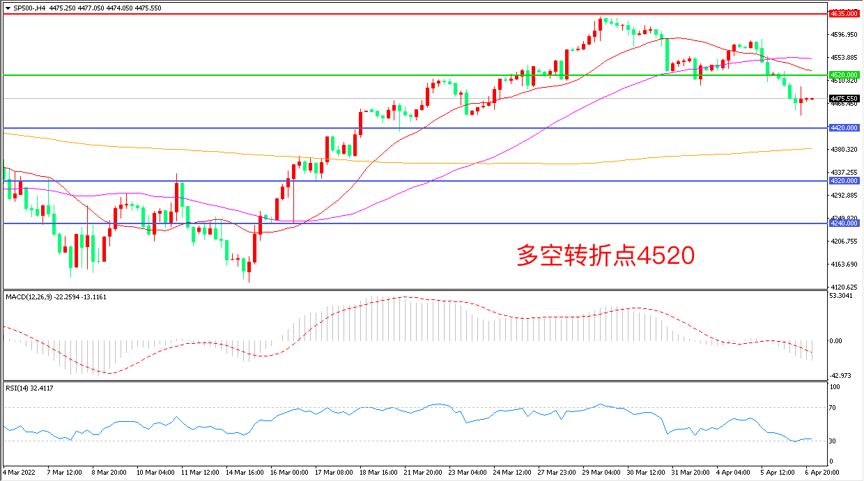 交易策略:在4520.00之下看跌,目标4420.00       4320.00