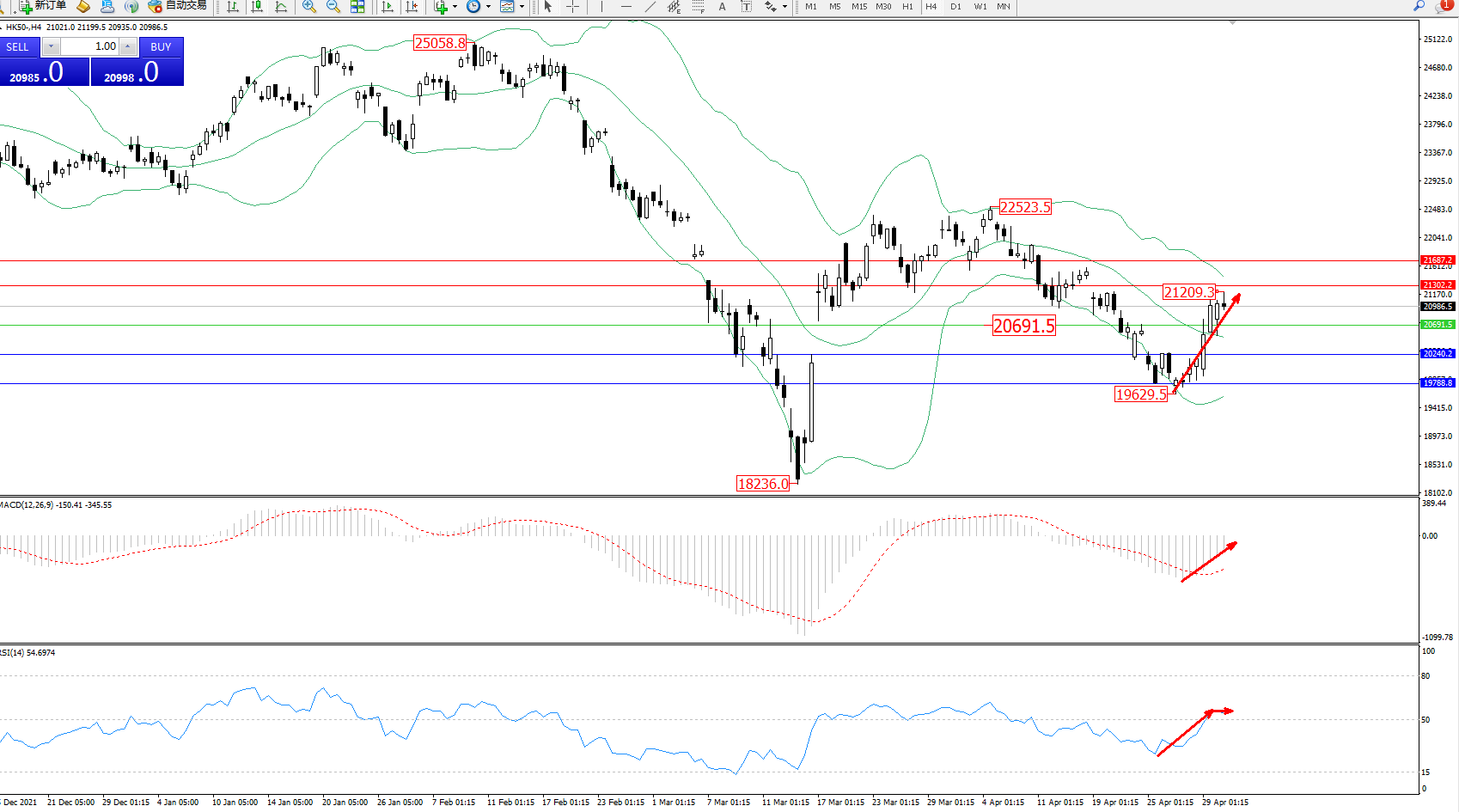 技术点评:低位多头动力强势反转上移,纠结于布林带指标中上轨区间21209附近震荡,短期多头动力有继续上扬态势,布林带指标呈收口走势中,MACD指标处于空头区域维持震荡上移,RSI指标低位多头动力维持震荡上移至50均衡线上側徘徊中;
