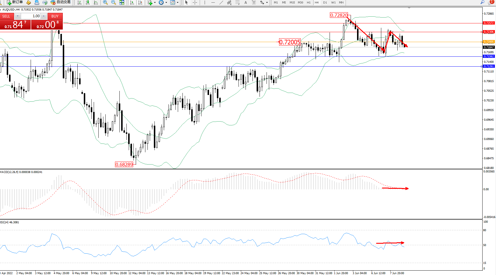备选策略:0.72005上方看涨,目标0.72306、0.72572