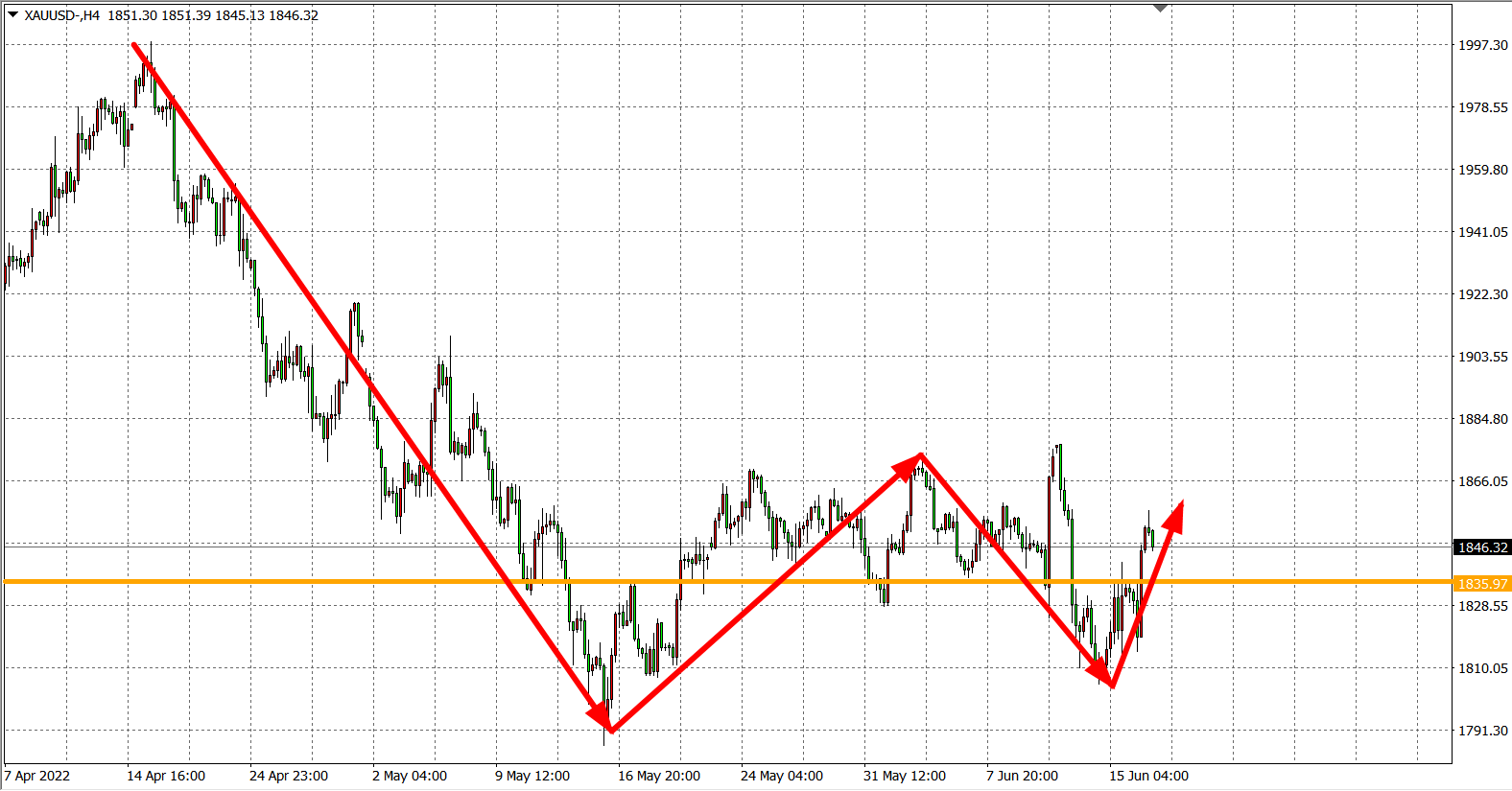 交易策略:在1836.00之下看跌,目标1820.00 1800.00