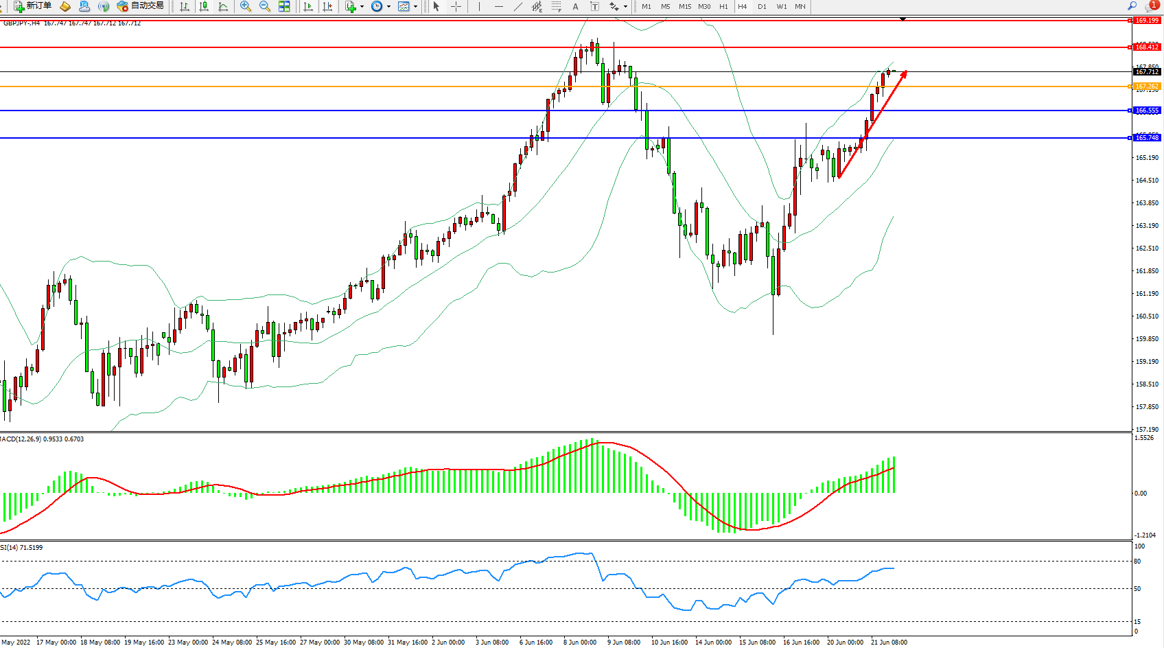 英镑兑日圆维持167.600附近震荡,英国央行对通胀越来越警惕,上周该行的行动符合预期,将利率上调25个基点,同时调整了未来加息可能性的指引。英国央行表示,如果认为有必要,将采取“强有力”的行动,这预示着未来将加息50个基点。