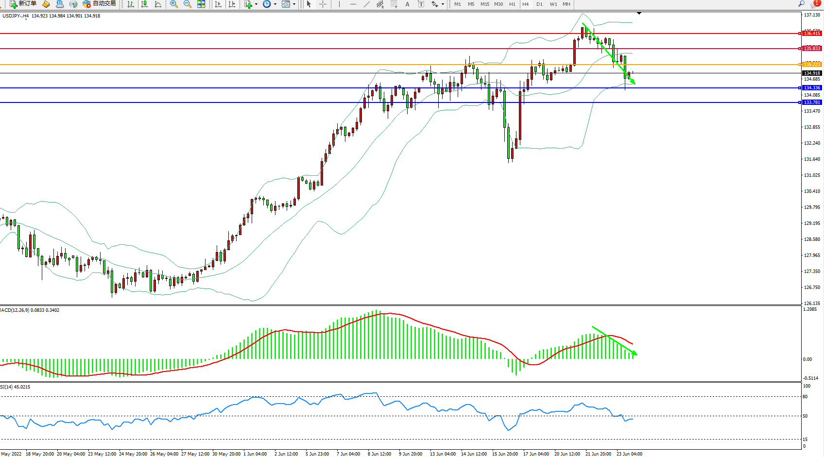美元兑日圆维持134.685附近震荡,美元兑日圆的波动与日圆风险相关性不太强,预计短期内这一形势不会改变,因此预计美日短期走势偏向走高,预计未来几周将于130.00和138.50区间波动。