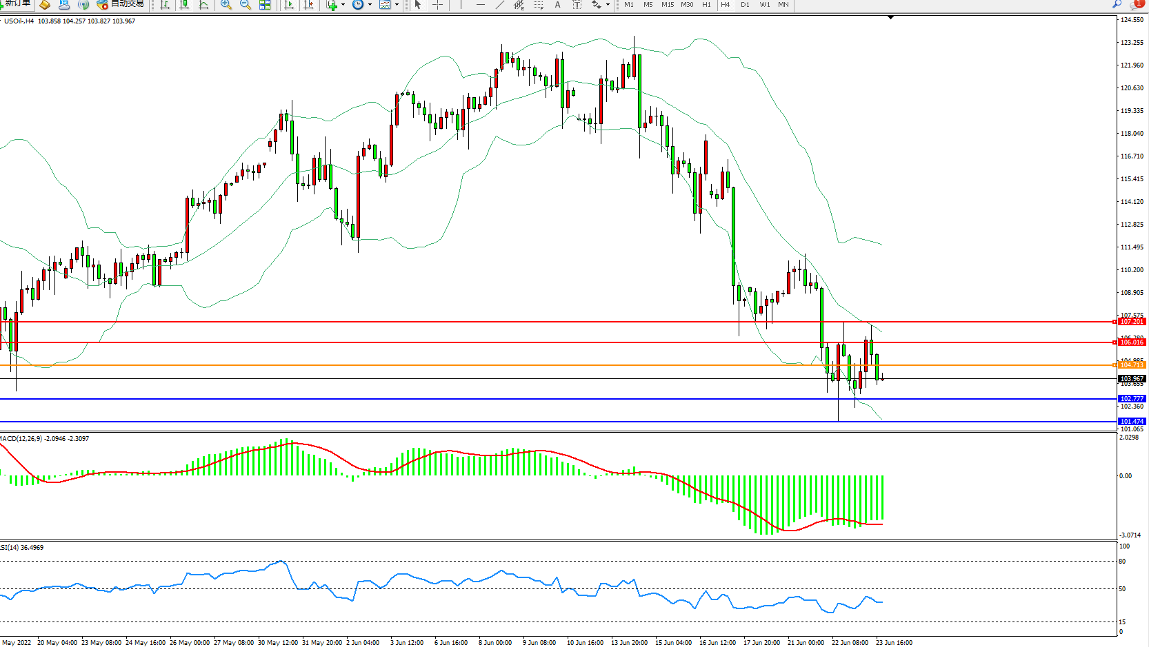 原油USOil——4小时K线图显示: